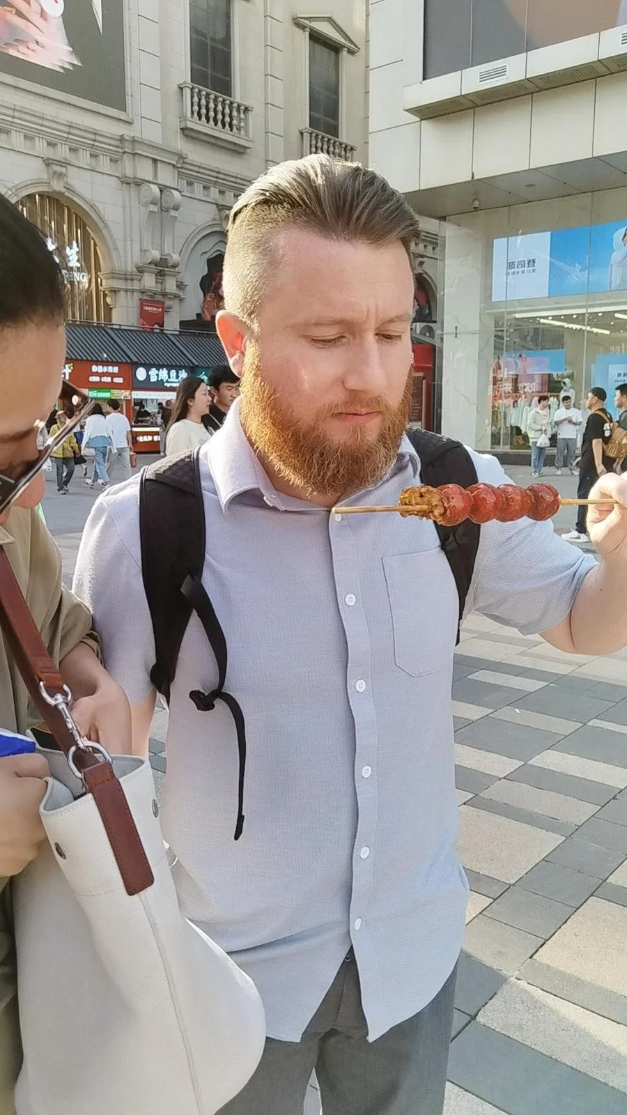 Trying a hawberry snack - the local speciality in Shenyang, CN. Amazing, ps.